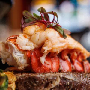 Enjoy a classic, satisfying dinner featuring a juicy steak, tender lobster, a baked potato, and a fresh side salad—all at an unbeatable midweek price.